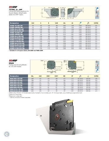 • When using .079 and .118" double-sided inserts, the depth of cut is limited up to .75". For larger depth, use a DGNM type single-ended insert.