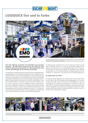 LOGIQUICK live und in FarbeF%u00fcnf Tage Hightech, Gespr%u00e4che auf Augenh%u00f6he und praxisnahe L%u00f6sungen %u2013 die EMO 2025 in Hannover war f%u00fcr ISCAR ein voller Erfolg. Am Messestand pr%u00e4sentierte der Werkzeugspezialist seine neuesten Entwicklungen f%u00fcr die effiziente Zerspanung.Im Mittelpunkt des Messeauftritts stand die aktuelle LOGIQUICK-Werkzeugkampagne, die innovative Werkzeuge f%u00fcr das wirtschaftliche und effiziente Drehen, Fr%u00e4sen, Bohren und Stechen umfasst. Neben den Zugpferden der Kampagne, dem QUICKTURN, dem flexibel einsetzbaren und stabilen Drehwerkzeug, dem f%u00fcnfschneidigen Stechsystem QUICKPENTA, ISCARs Kombilinie zum Bohren und Fr%u00e4sen, QUICKDMILL, sowie dem QUICK3CHAM zum Aufbohren pr%u00e4sentierte ISCAR zahlreiche weitere clevere L%u00f6sungen. Etwa die GUNDRILL-Einlippen-Tieflochbohrer der Serien SolidDeep, BrazeDeep und TriDeep, die maximale Pr%u00e4zision beim Prozess erlauben, und den neuen PICCOJET-Schneideinsatz. Mit Doppelk%u00fchlung und optimierter Spanabfuhr punktet er in Disziplinen wie Einstechen, Gewindeschneiden sowie Innendrehen und %u00fcberzeugt durch hohe Standzeiten sowie sehr gute Oberfl%u00e4chenqualit%u00e4ten.Ein Werkzeug der besonderen Art und ein echter Eye-Catcher war die silbern funkelnde Gitarre aus Titan von Gitarrenbau-Legende Dean Zelinsky. Das Instrument war mit ISCAR-Werkzeugen und in enger Zusammenarbeit mit Partnern wie Mastercam entschieden. Dean Zelinsky war pers%u00f6nlich vor Ort und beantwortete unz%u00e4hlige Fragen zum Gitarrendesign, zur Ergonomie, zum Klang und zum Entwicklungsprozess.Die digitale Welt von ISCAREin weiteres Messe-Highlight, das viele Besucher an den Stand f%u00fchrte, war die Matrix 360. Die intelligente Werkzeugausgabe- und -verwaltungsl%u00f6sung bringt maximale Ordnung und Verf%u00fcgbarkeit in den Fertigungsalltag. Das kompakte Karussellsystem mit 560 F%u00e4chern l%u00e4sst sich dank Click-in-out-System flexibel konfigurieren. Sensorik erkennt automatisch Fachgr%u00f6%u00dfen und -positionen, Fachsegmente %u00f6ffnen sich selbstst%u00e4ndig. Werkzeuge, Zubeh%u00f6r und Betriebsmittel sind damit rund um die Uhr sicher und effizient verf%u00fcgbar.F%u00fcnf Tage Hightech, Gespr%u00e4che auf Augenh%u00f6he und praxisnahe L%u00f6sungen %u2013 die EMO 2025 in Hannover war f%u00fcr ISCAR ein voller Erfolg.Das Interesse der Besucher an den L%u00f6sungen und Services von ISCAR war gro%u00df, der Messestand brummte. Intensive Fachgespr%u00e4che mit Anwendern aus unterschiedlichen Branchen f%u00fchrtenzu konkreten und spannenden Projekten f%u00fcr die nahe Zukunft.14