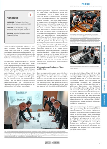 FR%u00c4SEN BOHREN DREHEN STECHEN INDUSTRIENPRAXISDas Ergebnis %u00fcberzeugt (v.l.): Jens K%u00f6rnert, Leiter Werkzeugwirtschaft bei HAVLAT, Sebastian Palik, Vertrieb und technische Beratung bei ISCAR, ISCAR-Anwendungstechniker Stefan Bayer, Ingo Mothes, Verkaufsleiter bei ISCAR, und Norbert Heinz, Fertigungsleiter bei HAVLAT, sind mit der ISCAR-L%u00f6sung sehr zufrieden.Um die passenden Werkzeuge f%u00fcr die wirtschaftliche und prozesssichere Bearbeitung der komplexen Komponenten zu finden, wandte sich das HAVLAT-Team an seinen langj%u00e4hrigen Technologiepartner ISCAR (v.l.): Sebastian Palik, Vertrieb und technische Beratung, Anwendungstechniker Stefan Bayer, Verkaufsleiter Ingo Mothes (alle ISCAR), Jens K%u00f6rnert, Leiter Werkzeugwirtschaft, und Norbert Heinz, Fertigungsleiter (beide HAVLAT). denen Bearbeitungsschritte schwer zu knacken%u201c, sagt Palik. %u201eAber wir hatten ein Ass im %u00c4rmel %u2013 das TechCenter in Ettlingen.%u201c In diesem bestens ausgestatteten Paradies f%u00fcr T%u00fcftler und Innovatoren testet ISCAR einerseits die eigenen Produkte, l%u00f6st aber vor allem auch die technischen Probleme seiner Kunden.HAVLAT stellte einen Probeklotz aus Inconel 625 zur Verf%u00fcgung, mit dem Palik, Bayer, ISCAR-Anwendungstechniker Harald Goehlert und das TechCenter-Team %u2013 Marco Huck und Markus Schmitt %u2013 ausgiebige Tests in Ettlingen fuhren. %u201eDas ganze Projekt war ja f%u00fcr uns auch Neuland%u201c, erz%u00e4hlt Stefan Bayer. %u201eWir haben unterschiedliche Bearbeitungsstrategien, Technologien und Schneidstoffe getestet, um herauszufinden, was am besten funktioniert.%u201c Ein von Harald Goehlert erdachtes Bewertungssystem, das Prozesssicherheit, W%u00e4rmeeintrag und viele weitere Faktoren ber%u00fccksichtigte, half bei der Beurteilung.Technologiepartner Hypermill unterst%u00fctzte mit zus%u00e4tzlichem Expertenwissen bei der Programmierung. %u201eNach 14 Tagen hatten wir dann das Paket aus Werkzeugen, Strategien und Schnittdaten geschn%u00fcrt und konnten es HAVLAT vorstellen%u201c, sagt Bayer. Als effizienteste L%u00f6sung hatten sich gek%u00fchlte Werkzeuge mit Schneiden aus Hartmetall herausgestellt. %u201eDie trugen deutlich weniger W%u00e4rme ins Material als etwa keramische Schneidstoffe%u201c, erkl%u00e4rt Palik. Besonders die Schneidstoffsorte IC 882, ein z%u00e4hes Substrat mit TiSiN PVD-Beschichtung und Oberfl%u00e4chenveredelung, f%u00fcr die Bearbeitung von austenitischem, rostbest%u00e4ndigem Stahl, Titan und hoch hitzebest%u00e4ndigen Legierungen, konnte %u00fcberzeugen. %u201eDieser Schneidstoff ist speziell f%u00fcr die Bearbeitung von Superlegierungen wie Inconel entwickelt worden%u201c, erkl%u00e4rt Anwendungstechniker Bayer.%u201eSein gr%u00f6%u00dfter Vorteil ist aber der kalkulierbare Verschlei%u00df. Platten aus IC 882 liefern bei unver%u00e4nderten Einsatzbedingungen zuverl%u00e4ssig dieselbe Standzeit.%u201c Palik erg%u00e4nzt: %u201eBesonders charmant an unserem Vorschlag: Wir k%u00f6nnen alle Aufgaben mit sechs Standardwerkzeugen aus unserem Portfolio l%u00f6sen. HAVLAT profitiert so nicht nur von hoher und schneller Verf%u00fcgbarkeit, sondern kann auch wirtschaftlicher fertigen.%u201cWerkzeugkonzept f%u00fcrs Bohren, Fr%u00e4sen und StechenZum Schruppen sollten zwei unterschiedliche Fr%u00e4sertypen zum Einsatz kommen %u2013 zum Abtrag zwischen den Schaufeln des Verdichters hatte sich ein 35-er MILL4FEED-Hochvorschubfr%u00e4ser mit vier Wendeschneidplatten (WSP) in der Hartmetallsorte IC 882 als Mittel der Wahl herausgestellt. An den anderen Stellen wird das Material mit dem MICRO3FEED-Schaftfr%u00e4SHORTCUTAUFGABE: Fertigung einer komplexen Baugruppen aus Inconel 625 L%u00d6SUNG: Im TechCenter ausgeknobeltes Werkzeug-Set von ISCAR NUTZEN: wirtschaftliche Fertigung, ProzesssicherheitiHAVLAT musste gro%u00dfe Baugruppen f%u00fcr Gasverdichter ausInconel fertigen.ser und dreischneidigen Trigon-WSP in IC 882im Hochvorschub-Verfahren abgetragen. Dreischneidige 240-Grad-Kugelkopffr%u00e4ser aus der DROPMILL-Reihe mit 16 und 25 Millimetern Durchmesser werden zum Vorschlichten des Konturbodens eingesetzt, ein Vollhartmetall-Fr%u00e4ser aus der MEGATroco-Linie mit 20 Millimetern Durchmesser zum Schlichten.Die notwendigen Bohrungen bringt HAVLAT mit einem 16-er-Wechselkopfbohrer mit 5xD und einem selbstzentrierenden Bohrkopf aus ISCARs SUMOCHAM-Linie ein. F%u00fcr Einstiche hatte das ISCAR-Team ein Werkzeugsystem aus einem MODULARGRIP-Grundhalter sowieAdapterkassetten f%u00fcr zweischneidige HELIGRIPSchneideins%u00e4tze mit vier und sechs Millimetern Stechbreite vorgesehen.Mit Ihrem Konzept lagen die Werkzeugspezialisten genau richtig. %u201eBei der Generalprobe in Zittau mussten wir nur noch die Schnittwerte ein wenig anpassen, da hier andere Maschinen stehen als im TechCenter%u201c, sagt Stefan Bayer.Inzwischen hat HAVLAT schon die ersten Teile erfolgreich gefertigt und ist hoch zufrieden. %u201eDie Zusammenarbeit war wieder sehr gut, ISCARs L%u00f6sung funktioniert prima%u201c, fasst Norbert Heinz zusammen. %u201eBei jedem weiteren gefertigten Teil lernen wir etwas dazu und entwickeln das Konzept mit Unterst%u00fctzung von ISCAR immer weiter.%u201c47