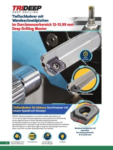TRIDEEP-Wendeschneidplatten und -Bohrer erzielen beim Bohren ab