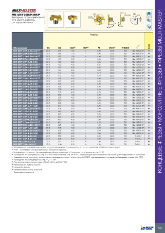 MM GRIT 22K-2.50-0.20  21.70    2.50     4.50       4       0.20      22.00     T08   MM EGR 20-22*  •     КОНЦЕВЫЕ ФРЕЗЫ • МОНОЛИТНЫЕ ФРЕЗЫ • ФРЕЗЫ MULTI-MASTER