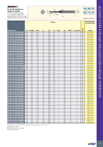 EC-A2 006-009/08C4M45 0.60 4.00 0.90 8.0 45.00 0.55 2 30.0 3.0 C • 0.0010-0.0030 КОНЦЕВЫЕ ФРЕЗЫ • МОНОЛИТНЫЕ ФРЕЗЫ • MULTI-MASTER