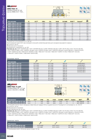 Торцевые фрезы HM90 F90A-15 40.00 CICT (2) APMX OAL DHUB DCONMS OAL RMPX° (3) Оправка Rd° kg