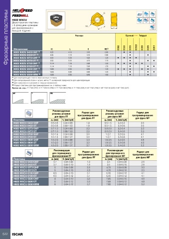 Пластины                   ap (мм)  fz (мм/зуб)  для фрез FF     ap (мм)  fz (мм/зуб)  для фрез MF