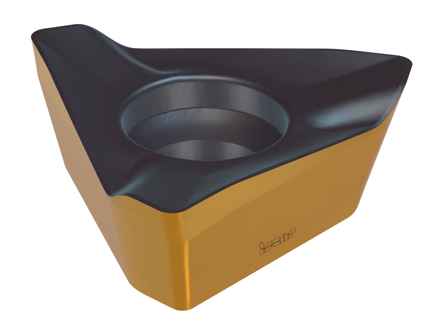 To maximize the efficiency of cemented carbides, a new round of insert development was initiated. The successful adaptation of the helical cutting edge to triangular inserts addressed this limitation. The triangular insert concept not only provides three cutting edges but also offers additional benefits. When compared to other shapes with equal cutting-edge length, the triangular shape provides a wider central area. This allows for an increase in the central bore size, enabling the use of a clamping screw with a larger thread. As a result, the insert securing is strengthened, contributing to the overall durability of the milling tool assembly. Additionally, the triangular shape enhances the ramping-down cutting capability.